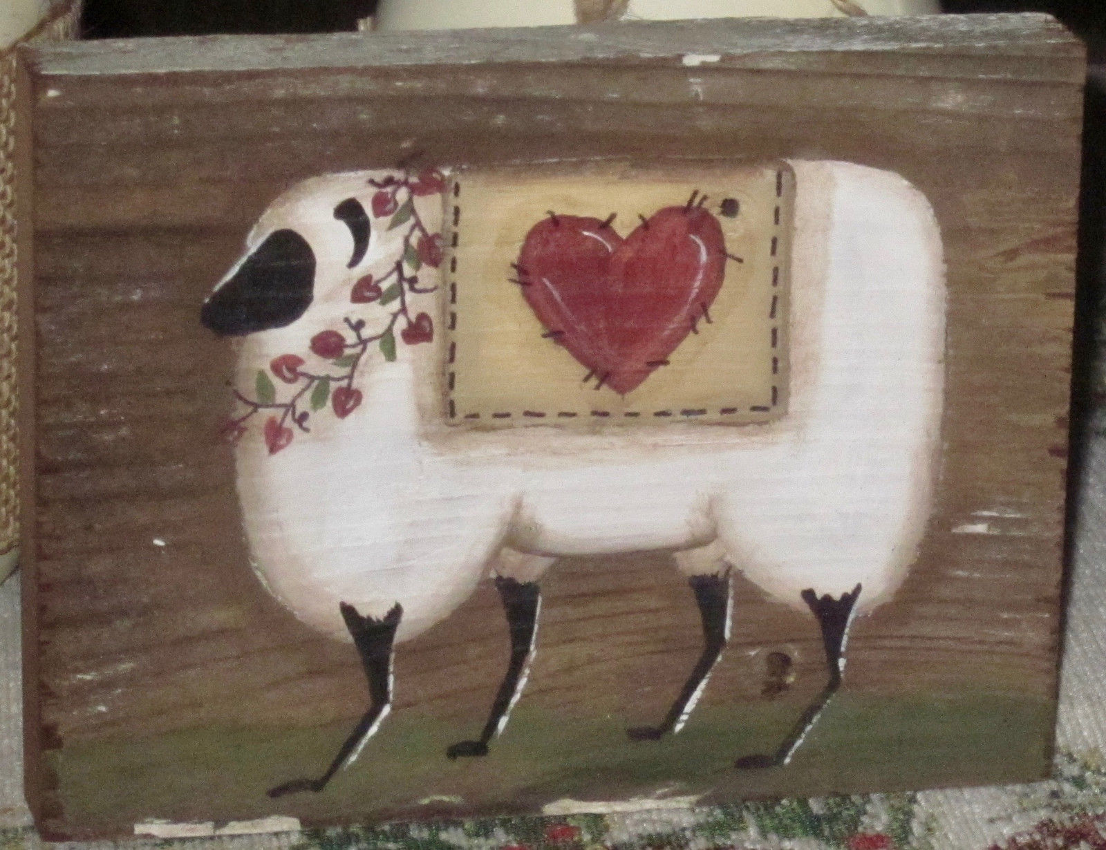 Title (ebay affiliate link): *~*PRIMITIVE*~*HP FOLK ART PRIM SHEEP * HEART * VALENTINE *~* OLD RECLAIMED WOOD
