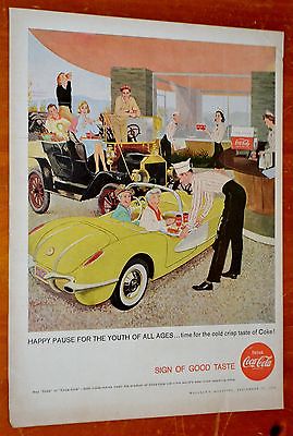 1959 COCA COLA POP AD WITH CORVETTE FORD MODEL T DRIVE-IN - COKE VINTAGE SODA