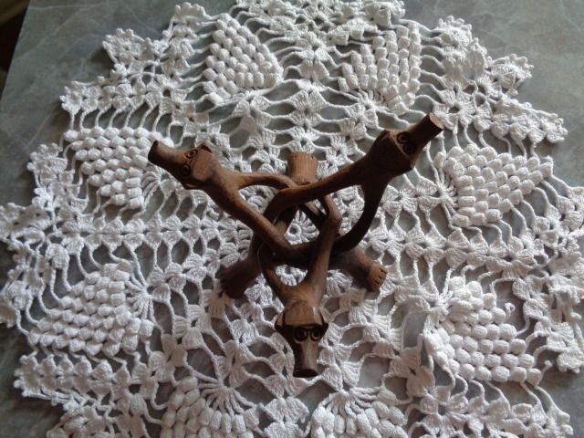 Vintage Collapsible Solid Wood Hand Carved Tripod Bowl Candle Stand Holder LOT 2