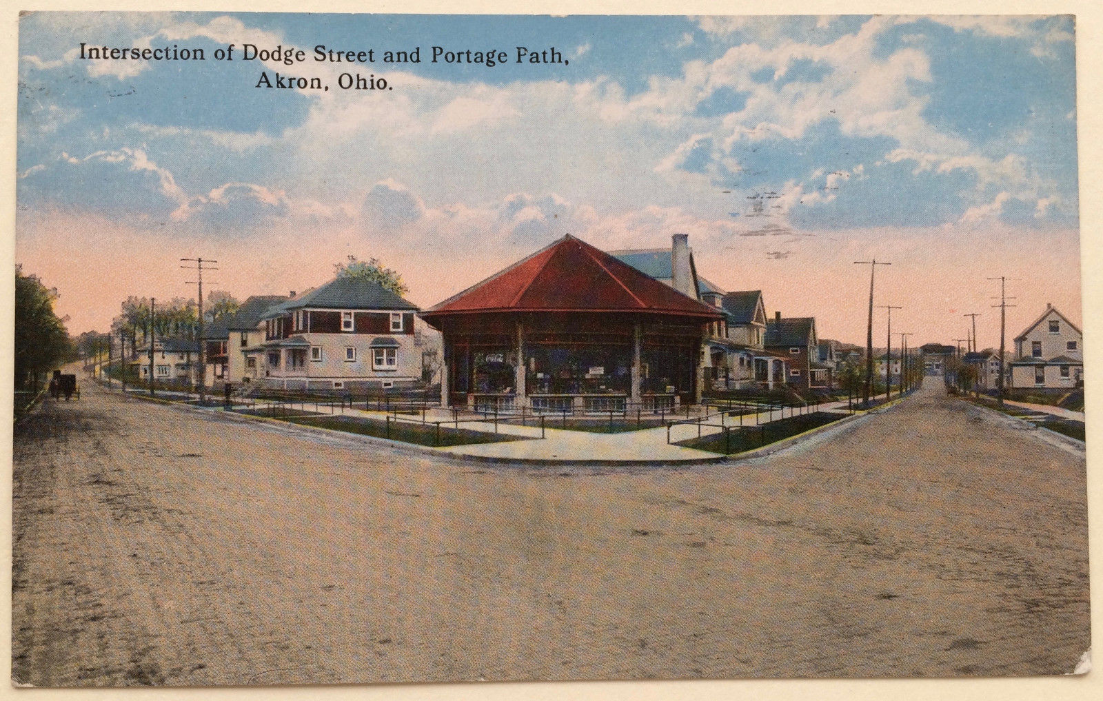 Title (ebay affiliate link): OH Ohio Akron; Intersection Dodge St. & Portage Path; Snack Bar? Coca Cola 1915