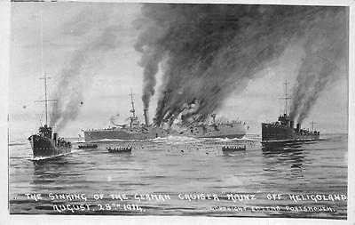 RPPC WWI GERMANY CRUISER SHIP MAUNZ HELIGOLAND MILITARY REAL PHOTO POSTCARD 1914