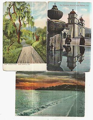 Lot of 3 Vintage Postcards-Santa Barbara CA-Fountain-Road-Waters in 1905-10-VF