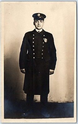 Title (ebay affiliate link): Vintage RPPC Real Photo Postcard Policeman Cop in Uniform Studio Portrait c1910s