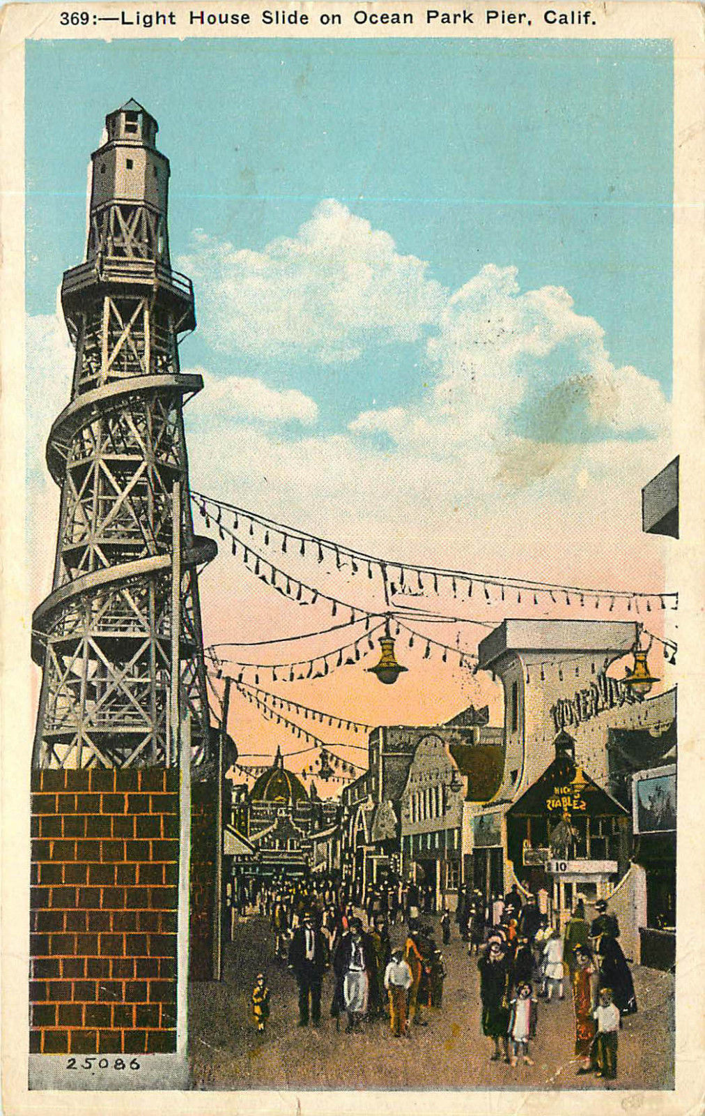 LIGHT HOUSE SLIDE, OCEAN PARK PIER, AMUSEMENT, CALIFORNIA, VINTAGE POSTCARD