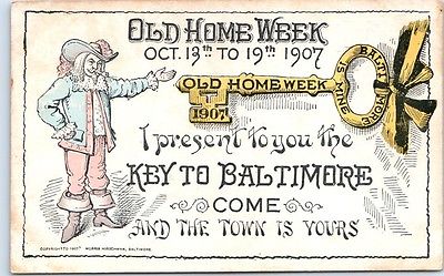 1907 Baltimore, Maryland Postcard "OLD HOME WEEK" Key to City w/ MD Cancel