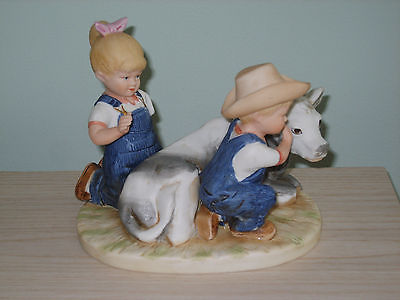 Homco Denim Days #8878, children with cow