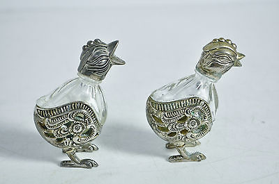 2 Vintage Silver Plated Cut Glass Godinger Bird Shaped Salt Pepper Shakers Set