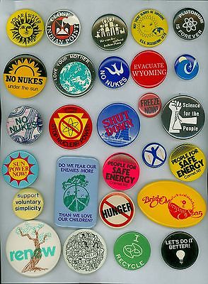 Title (ebay affiliate link): 27 Vintage 1970s-80s Assorted Ecology & Earth Day Pinback Buttons Sun Power Now
