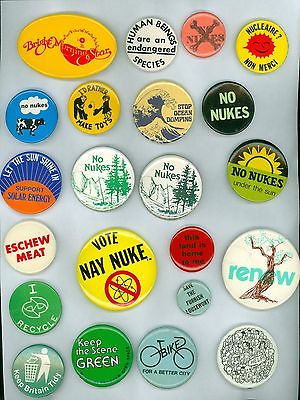 Title (ebay affiliate link): 22 Vintage 1970s-80s Ecology & Earth Day Pinback Buttons- No Nukes Under The Sun