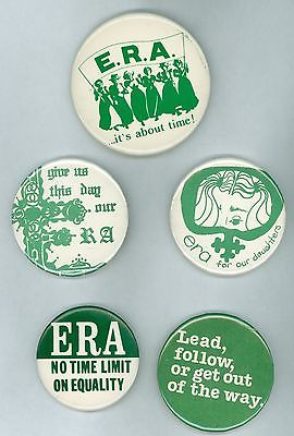 5 Vintage 1970s ERA Womens Liberation Pinback Buttons No Time Limit On Equality