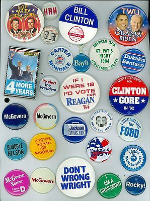 25 Vintage Presidential Political Campaign Pinback Buttons - Reagan Bush Clinton