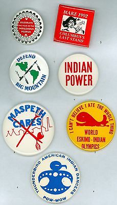 Title (ebay affiliate link): 7 Vintage 1980s Assorted Native American Protest Pinback Buttons - Indian Power