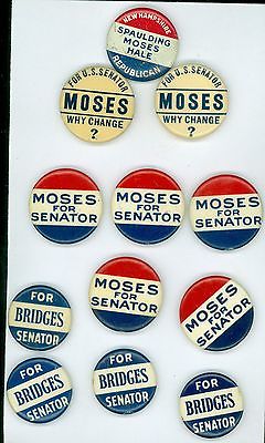 Title (ebay affiliate link): 12 Vintage 1930s New Hampshire Senators Political Pinback Buttons Moses Bridges