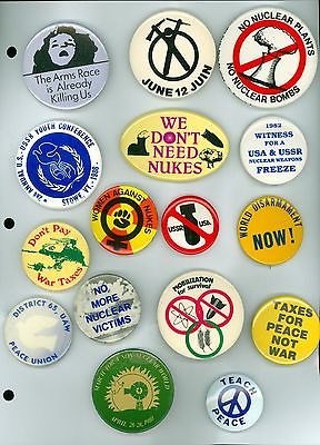 Title (ebay affiliate link): 16 Vintage 1980s Peace & Anti-War No Nukes Campaign Pinback Buttons
