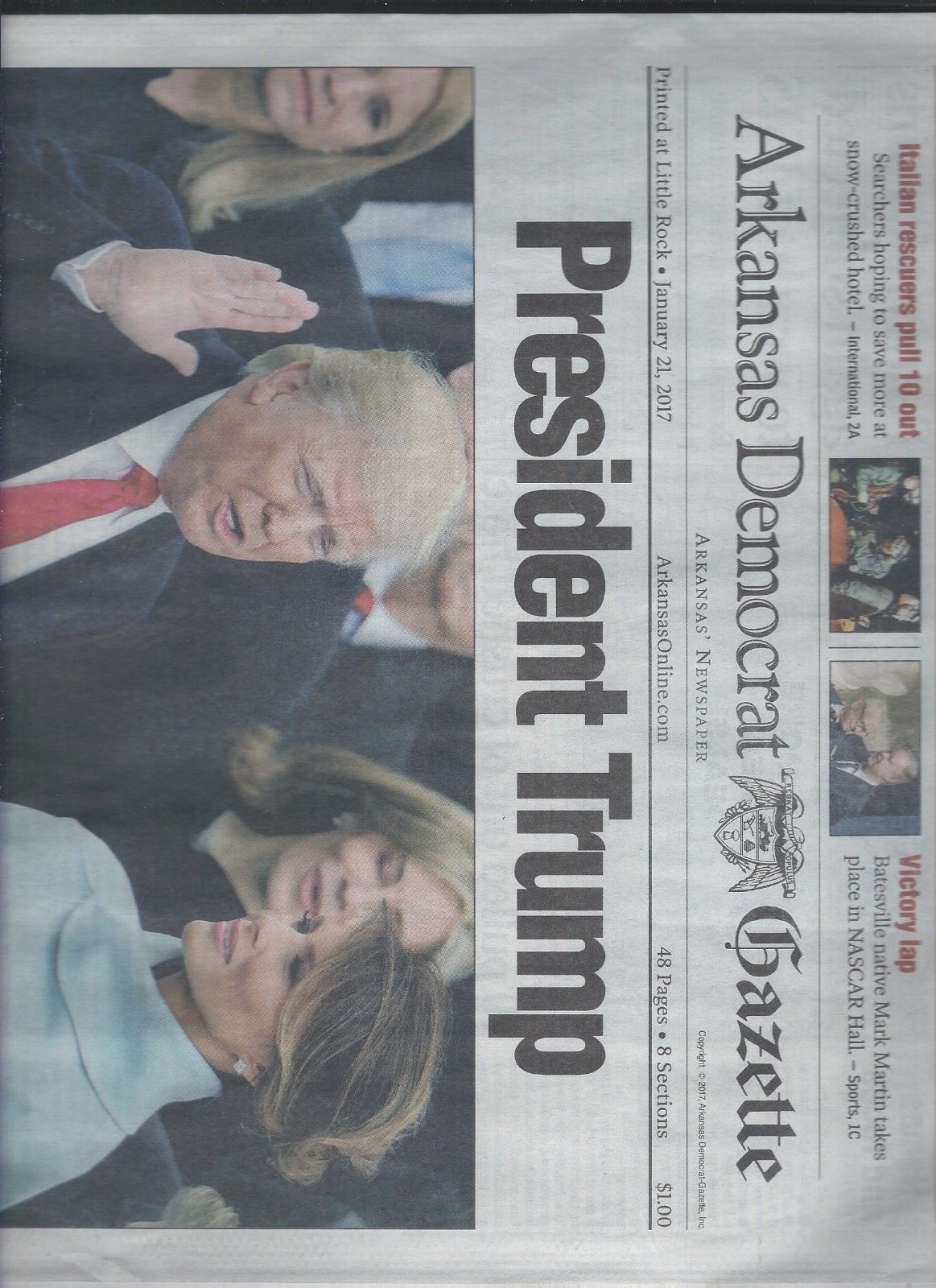 Donald Trump president newspaper Arkansas Democrat Gazette front section 1/21/17