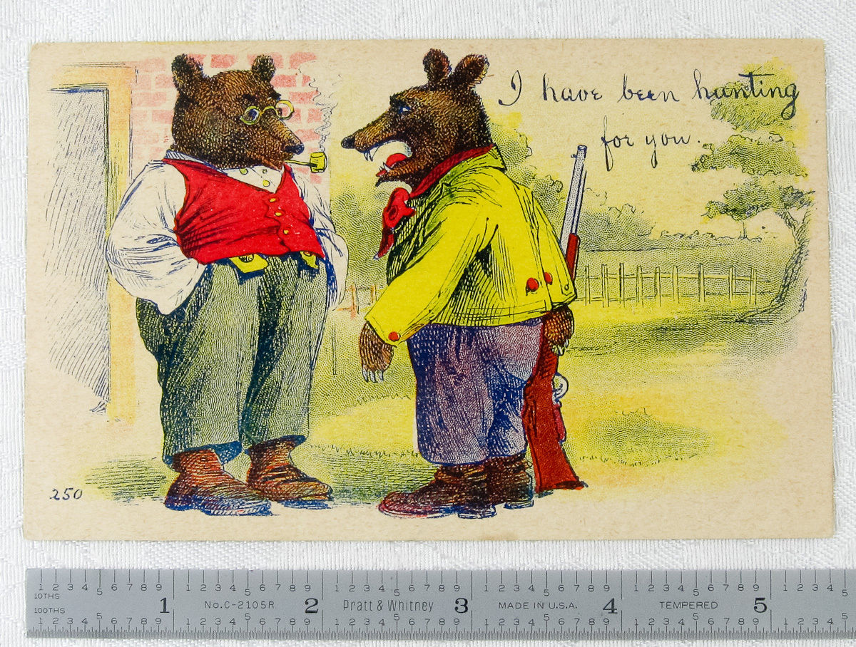 Title (ebay affiliate link): GREAT ROOSEVELT BEARS POSTCARD HUNTING RIFLE PINCE NEZ