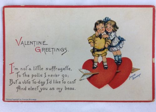 Title (ebay affiliate link): 1914 Frances Brundage SUFFRAGETTE Political Valentine Postcard No 414