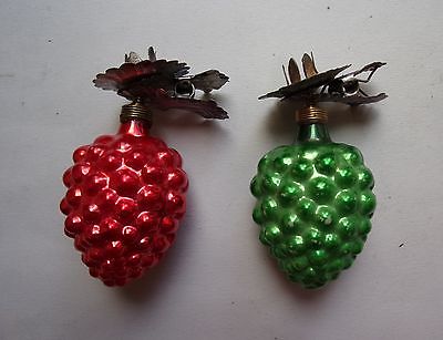 LOT OF 2 ANTIQUE CLIP ON CHRISTMAS CANDLE HOLDERS with BLOWN GLASS GRAPES