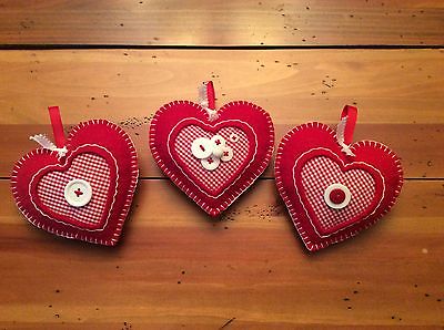 Title (ebay affiliate link): PRIM WOOL FELT PENNY RUG ORNIES BOWL FILLERS VALENTINE HEARTS RED GINGHAM CHECK