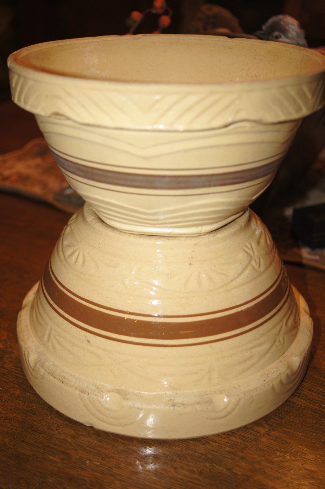 Title (ebay affiliate link): 2 Nesting Antique Yelloware Mixing Bowls Early Yellow Glaze Primitive Country