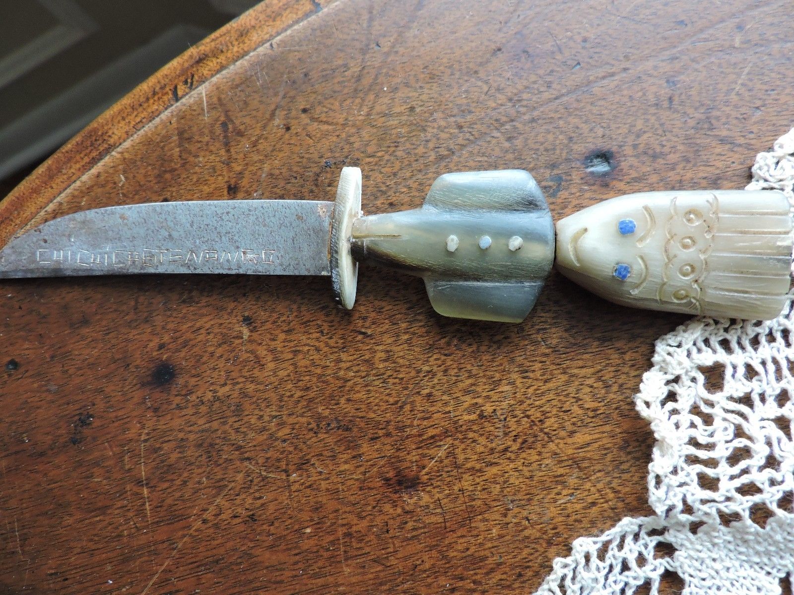 rare! OLD VINTAGE PRIMITIVE CARVED ANTLER HORN KNIFE maker? Trench art?