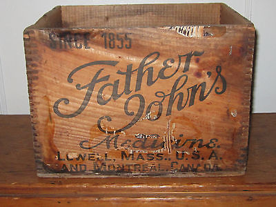 Antique Wood Crate Box Advertising Father John''s Medicine Lowell Mass Early