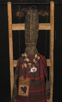 PRIMITVE Folk Art Black Doll Valentine Heart