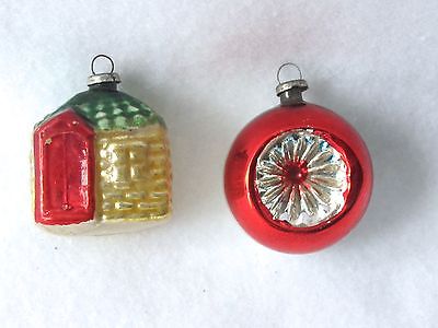Pr Antique FIGURAL HSE & INDENT FEATHER TREE Christmas ORNAMENTS JAPAN Vtg 1930s