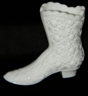 FENTON WHITE MILK GLASS SHOE - DAISY & BUTTON PATTERN