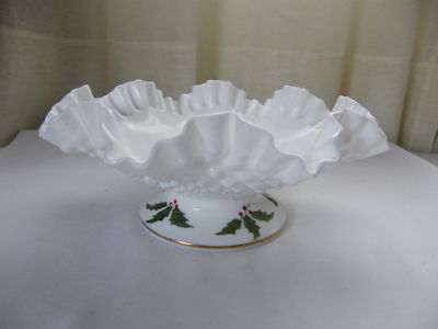 Fenton Milk Glass Hobnail Christmas Ivy Fruit Bowl