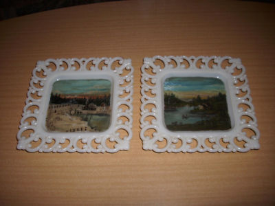 Antique Pair Hand Painted Milk Glass Plates Worth Look