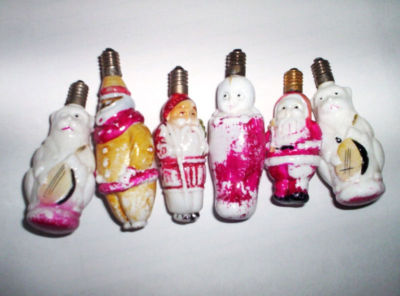 WWI VINTAGE MILK GLASS CHRISTMAS FIGURAL LIGHT BULB LOT