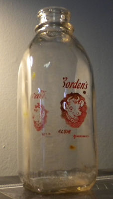 Vintage Borden's Red Pyro Quart Glass Milk Bottle Elsie