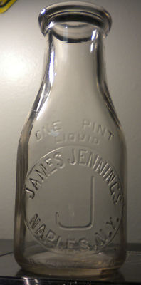 Rare Glass Pint Milk Bottle James Jennings Naples NY