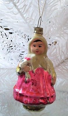 Title (ebay affiliate link): Beautiful Vintage Christmas Decor. Girl with flowers. Old Rare. IDEAL Condition