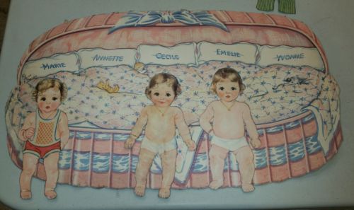 Title (ebay affiliate link): Vintage Original Merrill DIONNE QUINTUPLETS Paper Dolls Set with Bassinet