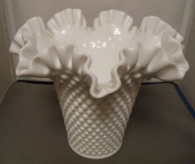 Fenton Ruffled White Hobnail Milk Glass Planter/Vase