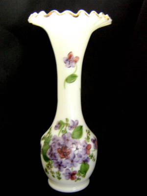 Consolidated Con-Cora Milk Glass Vase HP Violets 10 NR