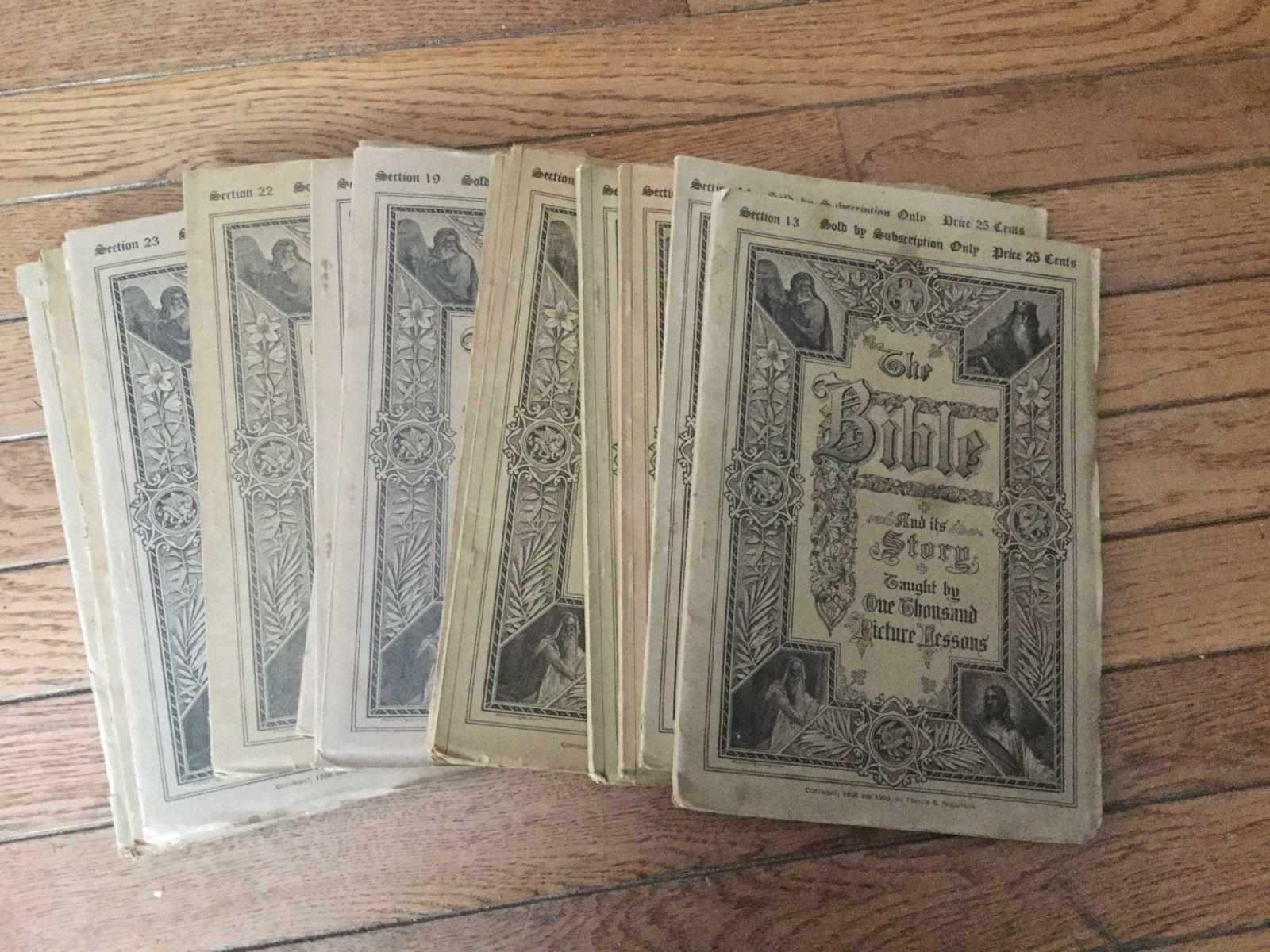 Title (ebay affiliate link): Antique 1908 Bible pictures lessons 14 books hundred beautiful works of art