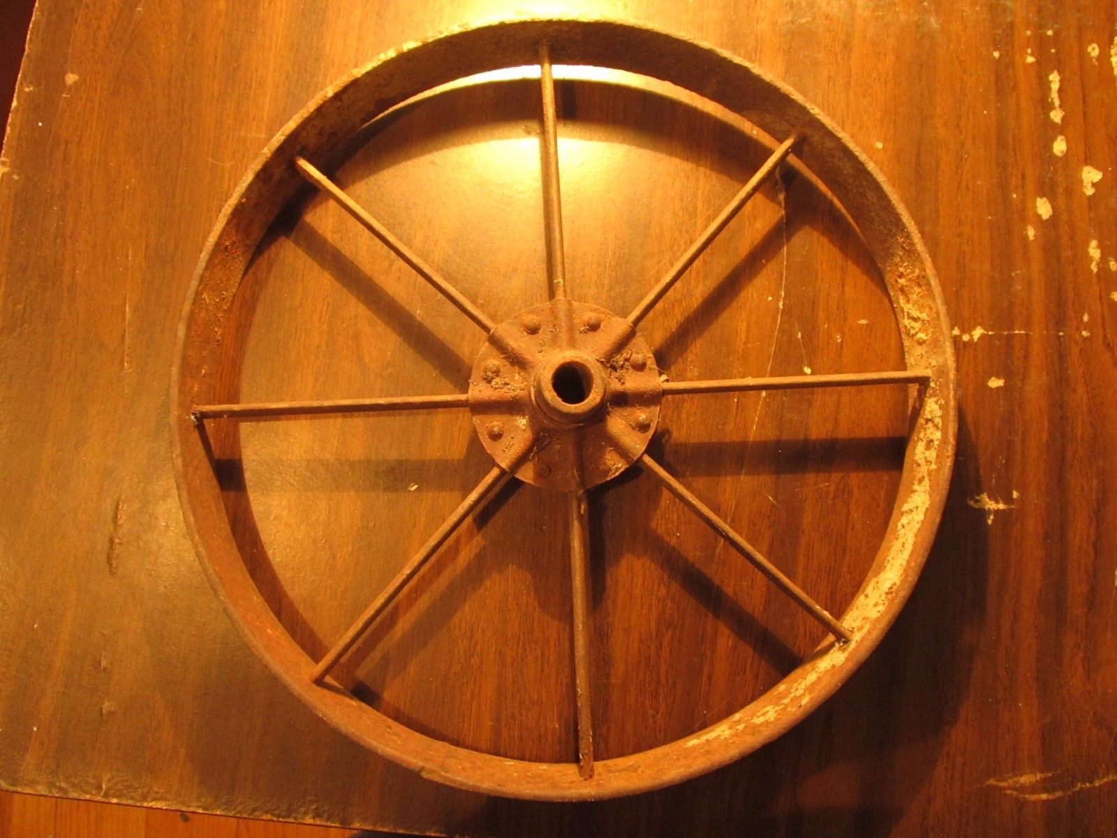 Vintage Used Antique Steel 8 Spoke Wheelbarrow Wheel, 15 1/2" Diameter