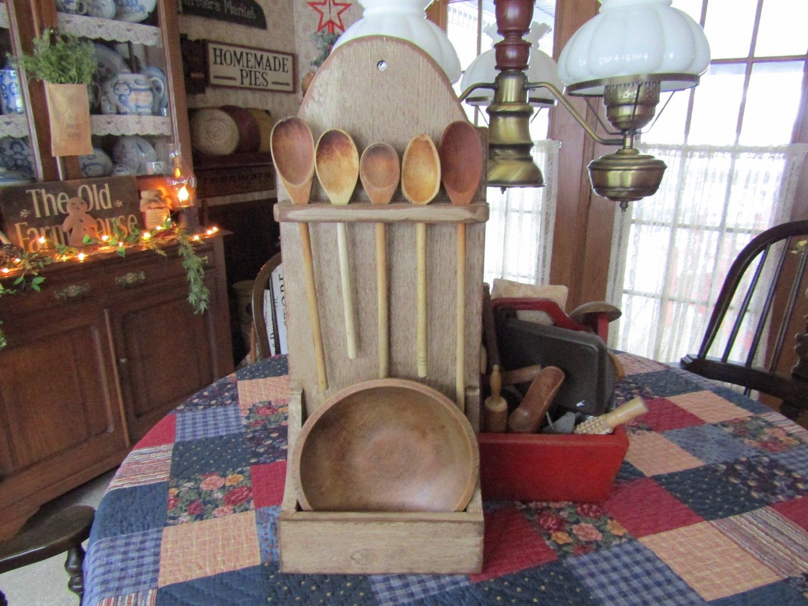 Title (ebay affiliate link): RUSTIC EARLY PRIMITIVE LOOK WOOD SPOON/BOWL WALL KEEP W/TOMBSTONE TOP