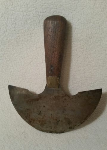 Title (ebay affiliate link): vintage primitive food chopper/leather knife? wood brass iron