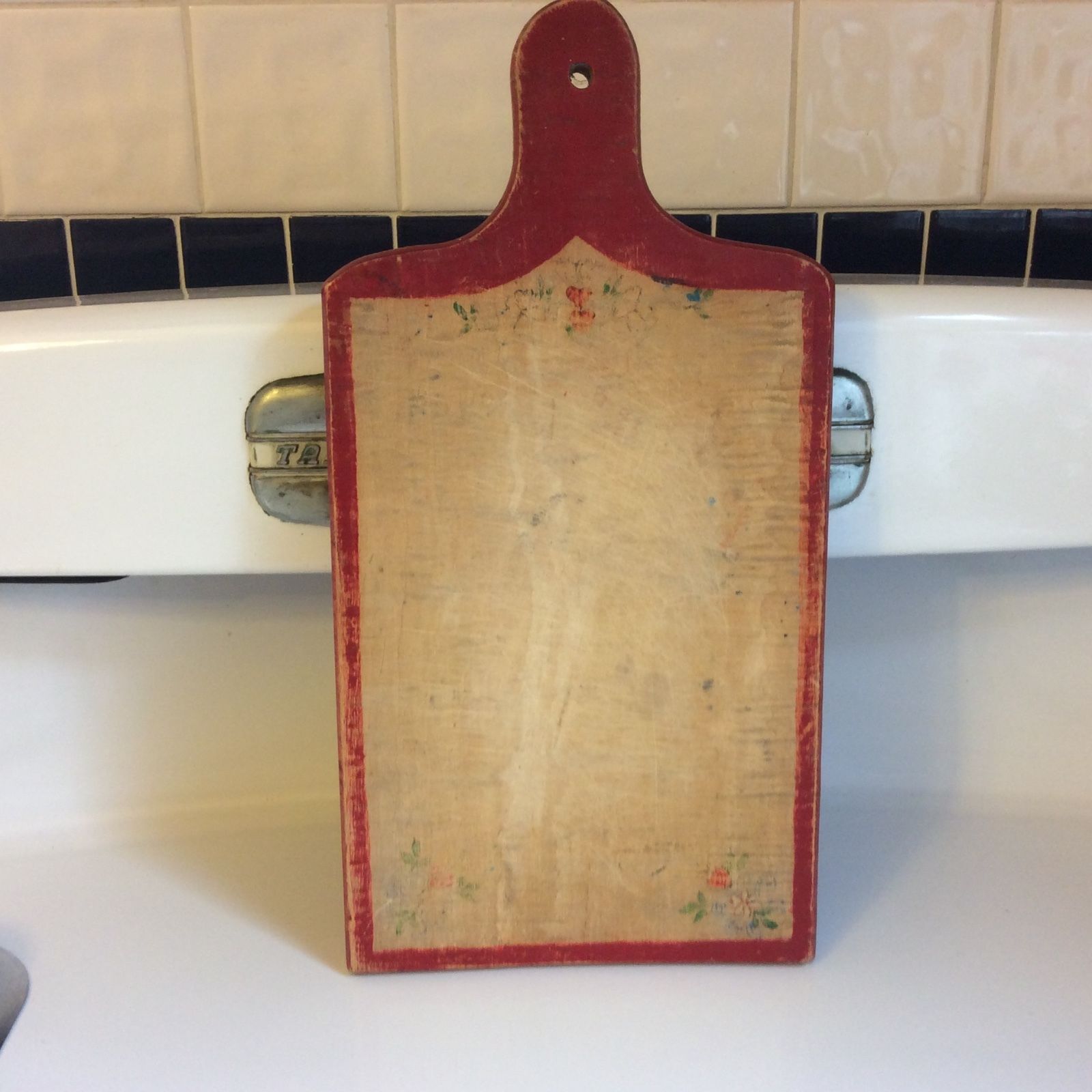 Title (ebay affiliate link): Vintage Wood Bread Cutting Board Vintage Red Paint On One Side