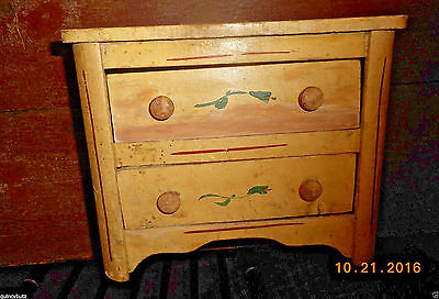 AAFA ANTIQUE FOLK ART PAINTED MINIATURE 2 DRAWER SPICE BOX CHEST