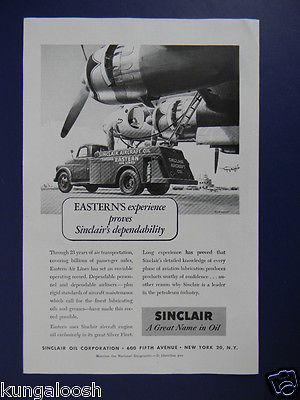 1951 EASTERN AIRLINES BEING REFUELED BY SINCLAIR AIRCRAFT OIL UNUSUAL ART AD