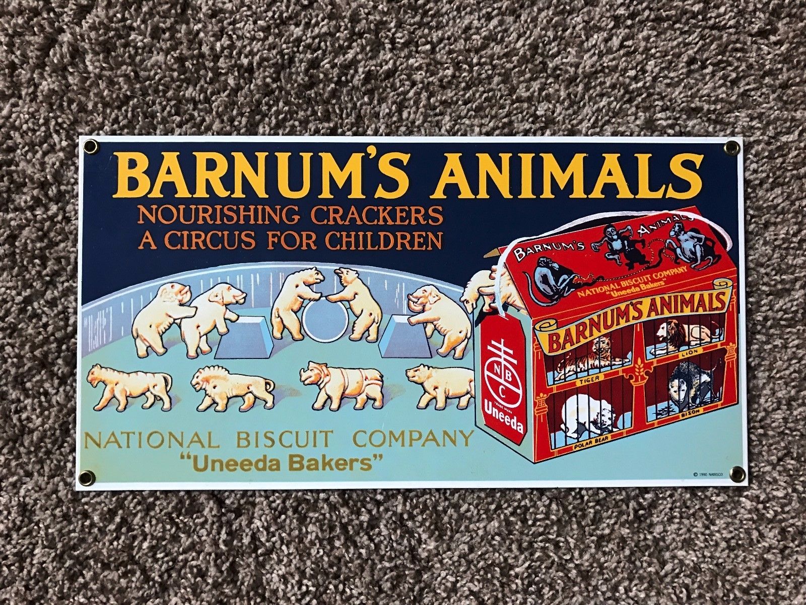 Barnum''s Animal Crackers Porcelain Enamel Advertising Sign Ande Rooney