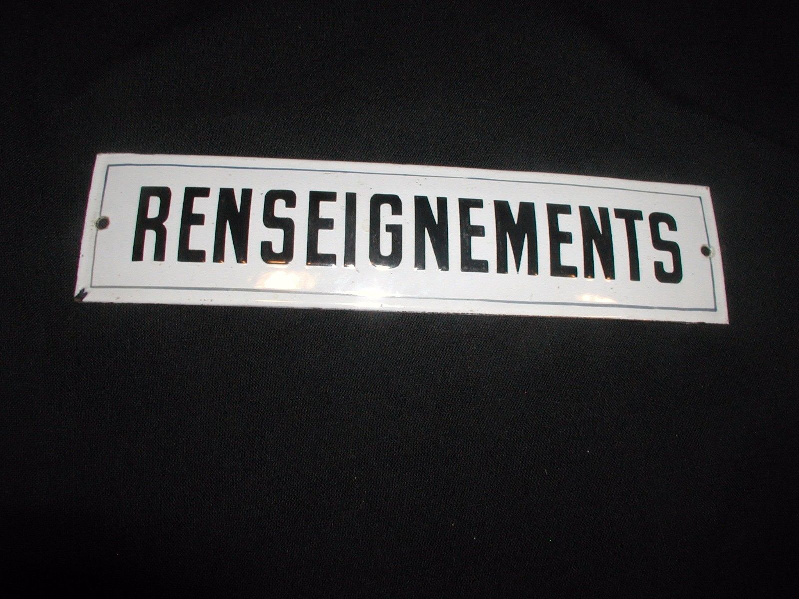 Old Vintage French Porcelain Enamel Metal Information Sign RENSEIGNEMENTS