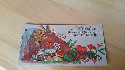 Wm. F. Harmon, Bookseller & News Agent, Great Falls, N.H. Vintage Trade Card