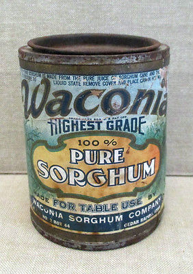 Title (ebay affiliate link): Vintage small can Advertising Tin-WACONIA SORGHUM Syrup-City-CEDAR RAPIDS-IOWA