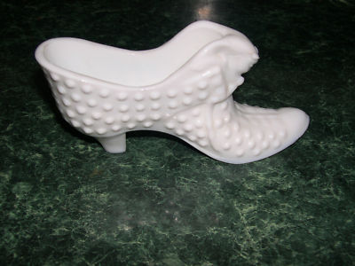 FENTON Cat Head Milk Glass Hobnail Slipper Shoe Vintage
